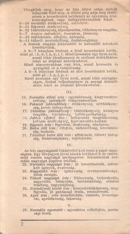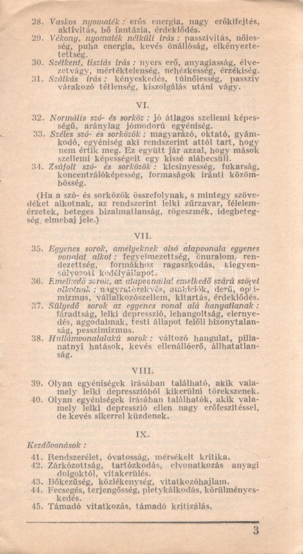 Kendi Miklós belvárosi kereskedő Grafológus automatája a mellékelt hártyapapír mellékletek segítségével segítséget nyújt a kéziratért felelős személy jellemének pontos azonosításában. A belív oldalain szöveges tájékoztató. (A találmányt a Nemzeti Újság 1939. március 10-i száma ismertette.)