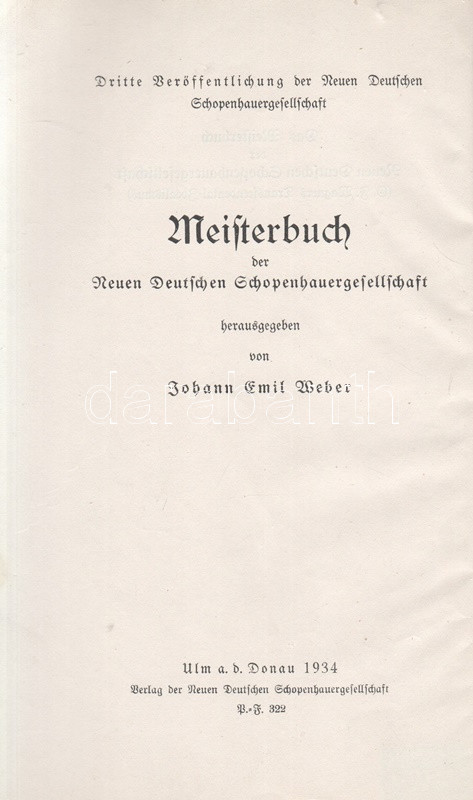 Ulm, 1934. Verlag der Neuen Deutschen Schopenhauergesellschaft. XXIII + [1] + 181 + [1] p. Első kiadás.