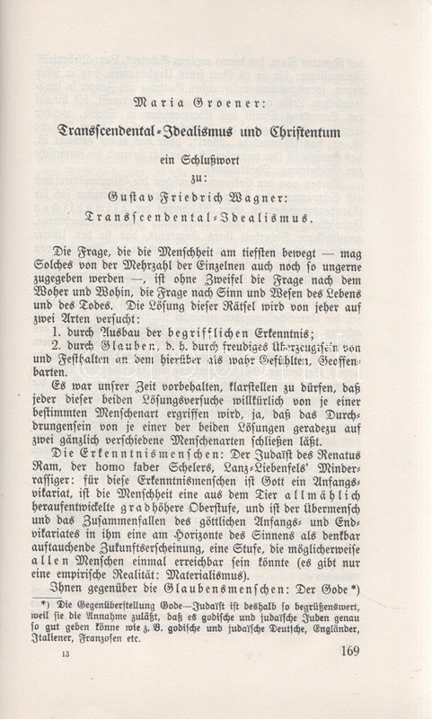 Transcendental-Idealismus. Eingeleitet, bearbeitet und mit einem Nachwort versehen von Frau Maria Groener.