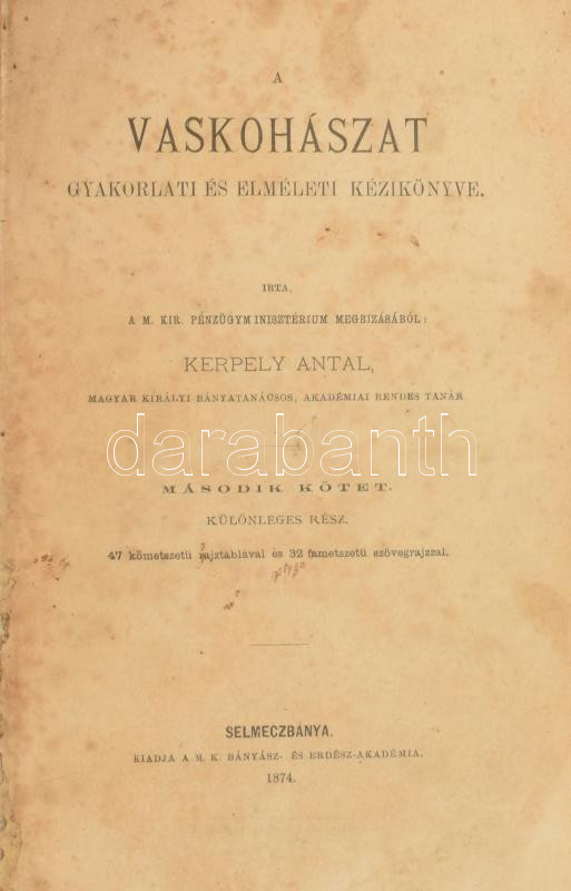 Kerpely Antal: A vaskohászat gyakorlati s elméleti kézikönyve. II. köt... https://www.darabanth.com/de/472-Fernauktion/472.0/Bucher/Bucher-Technik~500028/Kerpely-Antal-A-vaskohaszat-gyakorlati-s-elmeleti-kezikonyve-II-kotet-47-kometszetu-rajztC3~II3194993