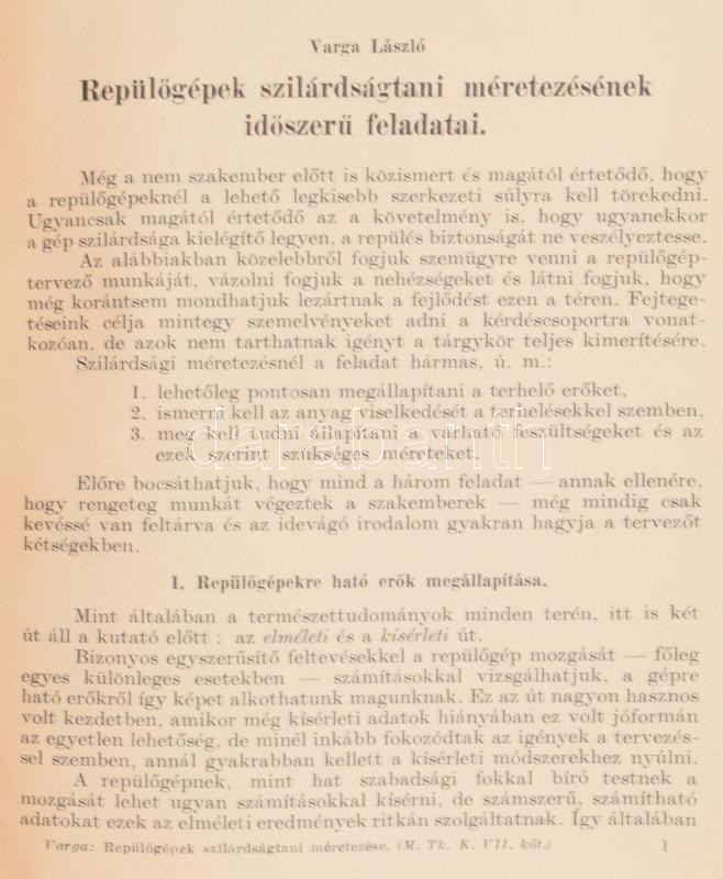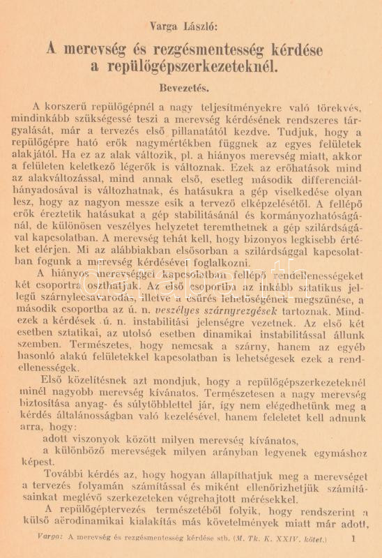 Varga László: A merevség és rezgésmentesség kérdése a repülőszerkezeteknél.;