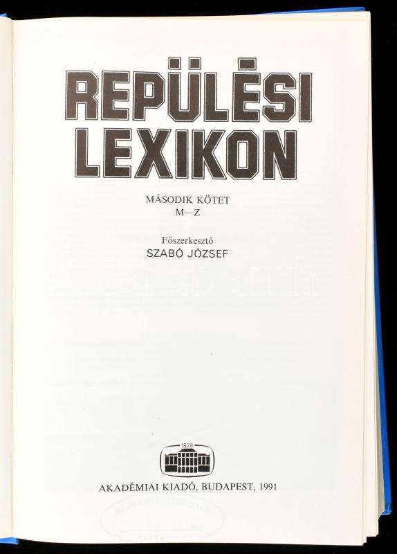 Szabó József (szerk.): Repülési Lexikon I-II. Bp., 1991, Akadémiai. Ki... https://www.darabanth.com/de/472-Fernauktion/472.0/Bucher/Bucher-Technik~500028/Szabo-Jozsef-szerk-Repulesi-Lexikon-I-II-Bp-1991-Akademiai-Kiadoi-kartonalt-kotes-~II2790917