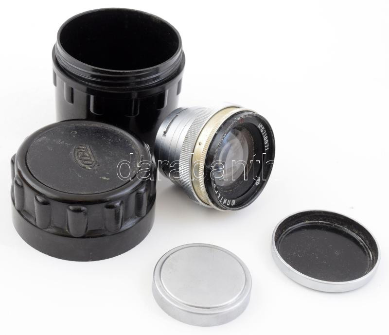 Beschreibung: Jupiter-8 1:2 F=5cm (50mm f/2) szovjet fényképezőgép objektív, tokban