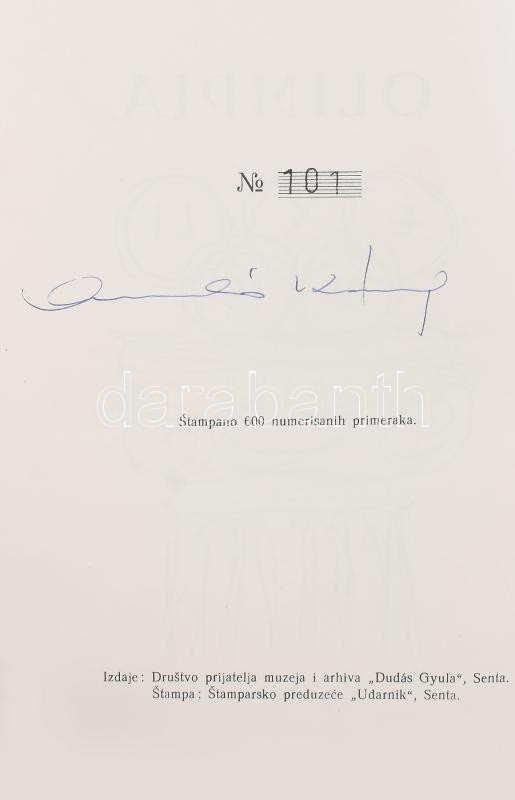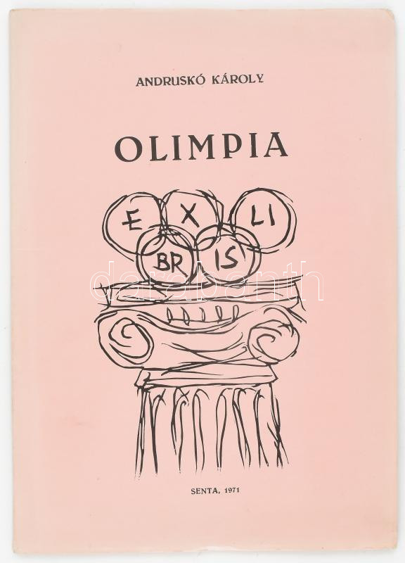 Andruskó Károly: Olimpia ex libris. Senta/Zenta, 1961, 21 p. Címlap hátoldalán számozott (101./600), aláírt példány. Kiadói papírborítóban. Lapméret: 21x14 cm.
