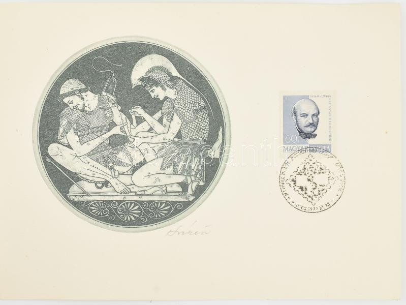 Beschreibung: Kékesi László (1919-1993): Semmelweis CM rézkarc-papír, jelzett kis szériás emléklapon 15x21 cm