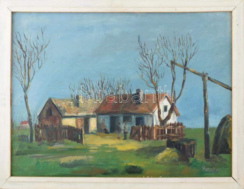 Hajós Hollanda Éva (1935-): Tanya emberekkel és kutyával. Olaj, farost... https://www.darabanth.com/de/472-Fernauktion/472.0/Gemalde-und-Grafiken/Gemalde-und-Grafiken~1000001/Hajos-Hollanda-Eva-1935-Tanya-emberekkel-es-kutyaval-Olaj-farost-jelzett-fakeretben-60x~II3201340