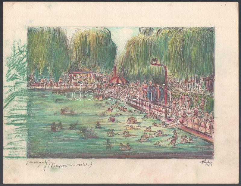 Hlavanda József (-): Dagály strand, Budapest (kompozíciós vázlat), 197... https://www.darabanth.com/de/472-Fernauktion/472.0/Gemalde-und-Grafiken/Gemalde-und-Grafiken~1000001/Hlavanda-Jozsef-Dagaly-strand-Budapest-kompozicios-vazlat-1977-Vegyes-technika-karto~II3180127