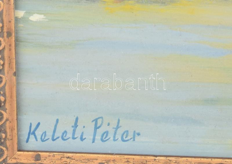 Beschreibung: Keleti Péter (1955-): Bassanoi részlet. Olaj, farost, jelezve balra lent, hátoldalán címkén feliratozott. 40x50 cm. Dekoratív fakeretben.