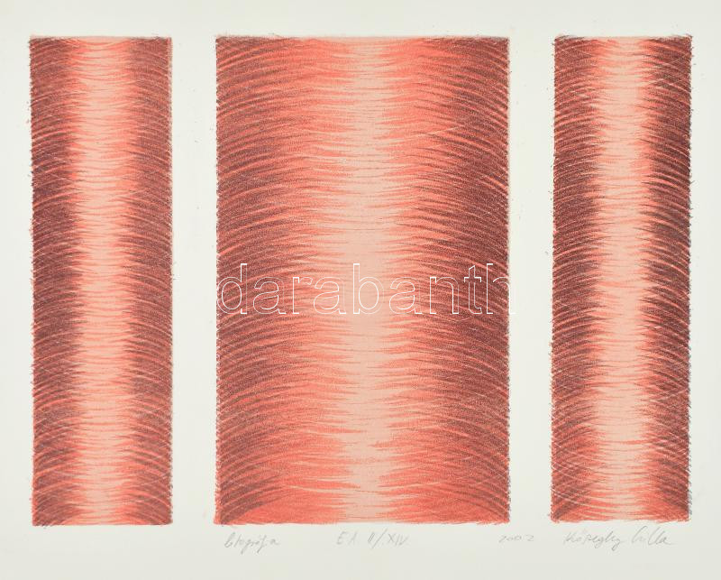 Beschreibung: Kőszeghy Csilla (1977-): Cím nélkül, 2002. Litográfia, papír, jelzett, művészpéldány E.A. II./XIV. számozással. 24x32,5 cm