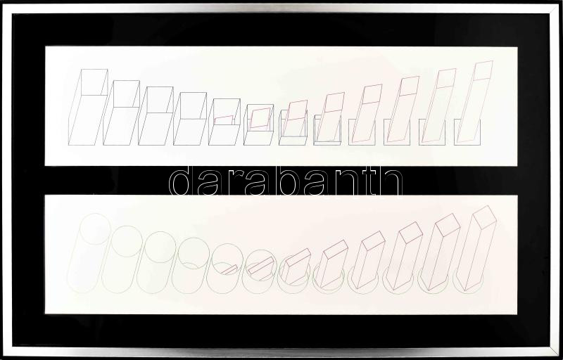 Kovács Attila (1938-2017): 2 db kompozíció, 1968-69. Szitanyomat, papír, jelzett és számozott (68/75 és 56/75) a hátoldalán, 20x80 (x2) cm. Mindkettő ugyanazon üvegezett keretben. Korai, gyűjtői darabok!/ 2 serigraphies on paper, signed and numbered (68/75 and 56/75) on the reverse, in one frame