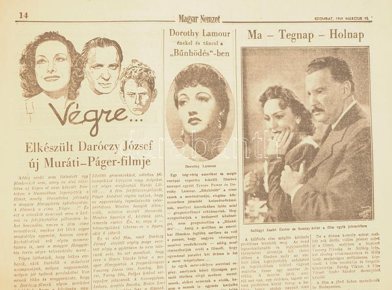 Sugár János (?-?, működött a XX. sz. első felében) grafikus rajzai, össz. 10 db: Többségében portrék, többek közt híres filmszínészek, mint pl. Szeleczky Zita, Jávor Pál arcképei, többségében újságban megjelent grafikák eredeti változatai és a megjelent újságok hozzáadva, 1940 körül. Tus (9 db), nyomat (1 db), papír, mindegyik jelzett, egyik vágott. Klf. méretekben.