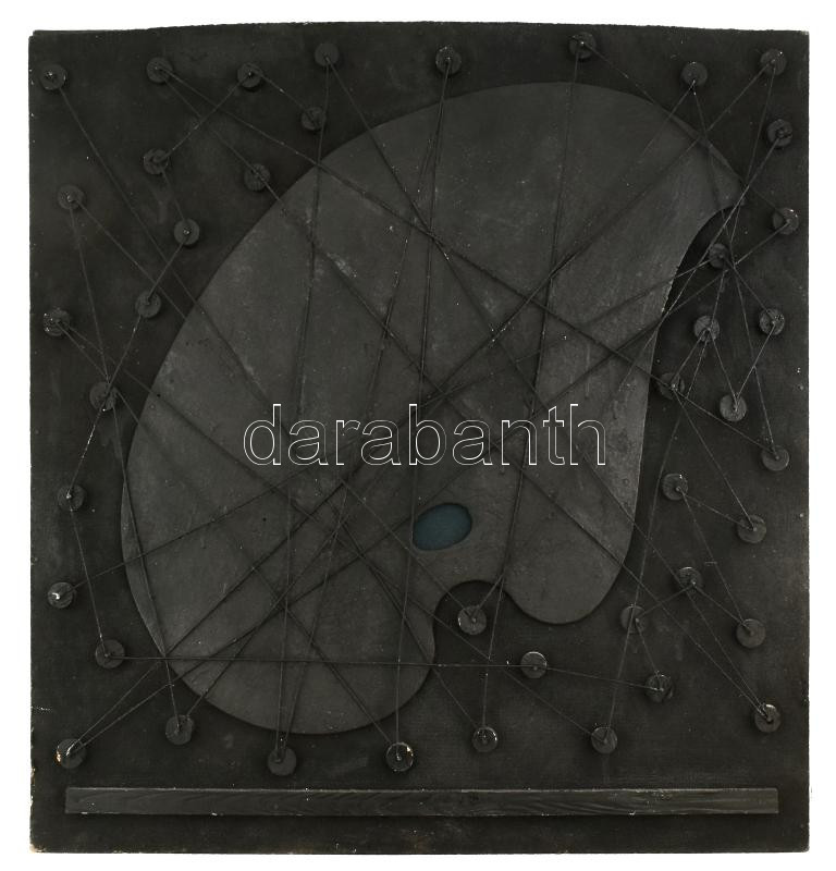 Szeift Béla (1944-2012): Fekete sejt, 1969. Akril, spárga, applikáció faroston, 68x66 cm, Jelezve hátoldalon: Szeift Béla, Fekete sejt 1969, Kiállítva Újpest 1969, Bp Galéria kiállítóháza.