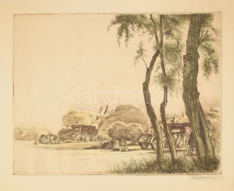 Zádor István (1882-1963): Cséplés. Színezett rézkarc, papír, jelzett, ... https://www.darabanth.com/de/472-Fernauktion/472.0/Gemalde-und-Grafiken/Gemalde-und-Grafiken~1000001/Zador-Istvan-1882-1963-Cseples-Szinezett-rezkarc-papir-jelzett-29x38-cm-Kartonra-kasC3~II3200718