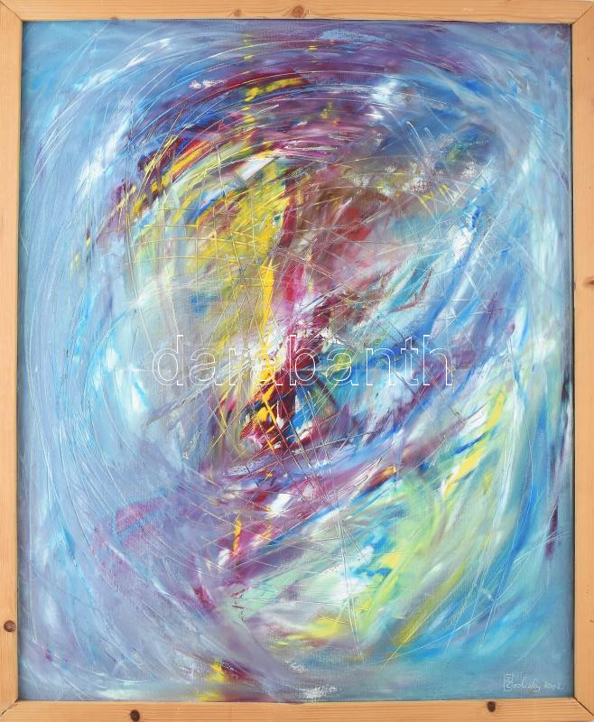 Beschreibung: Zvolszky Zita (1961-): Blue curasao, 2002. Olaj, vászon, jelzett a hátoldalán. 90x70. Fakeretben.