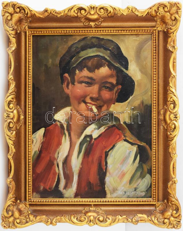 Jelzés nélkül, XX. sz. eleje: Cigarettázó fiú portréja. Olaj, vászon. ... https://www.darabanth.com/de/472-Fernauktion/472.0/Gemalde-und-Grafiken/Gemalde-und-Graphic-quot-signiertquot-quot-ohne-Signquot-~1000002/Jelzes-nelkul-XX-sz-eleje-Cigarettazo-fiu-portreja-Olaj-vaszon-Dekorativ-fakeretben~II3167243