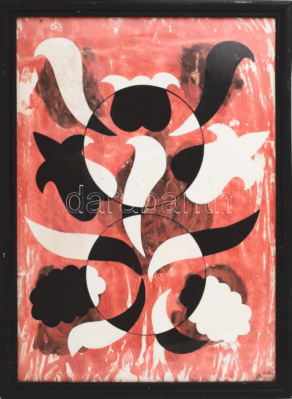 Olvashatatlan (ZB monogram?) jelzéssel: Geometria és gesztus. Vegyes technika, papír, üvegezett fakeretben, 60×45 cm