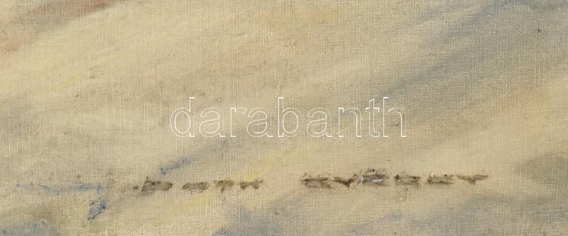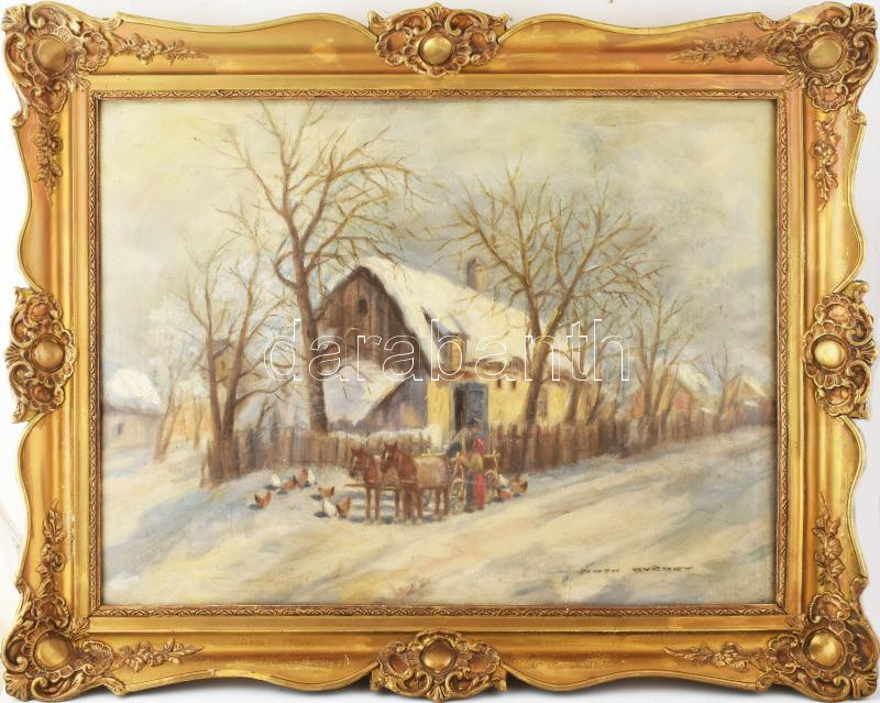 Olvashatatlan jelzéssel (Németh György?), XX. sz. első fele/közepe: Lovaskocsi. Olaj, vászon. Dekoratív, kissé sérült fakeretben. 60x80 cm