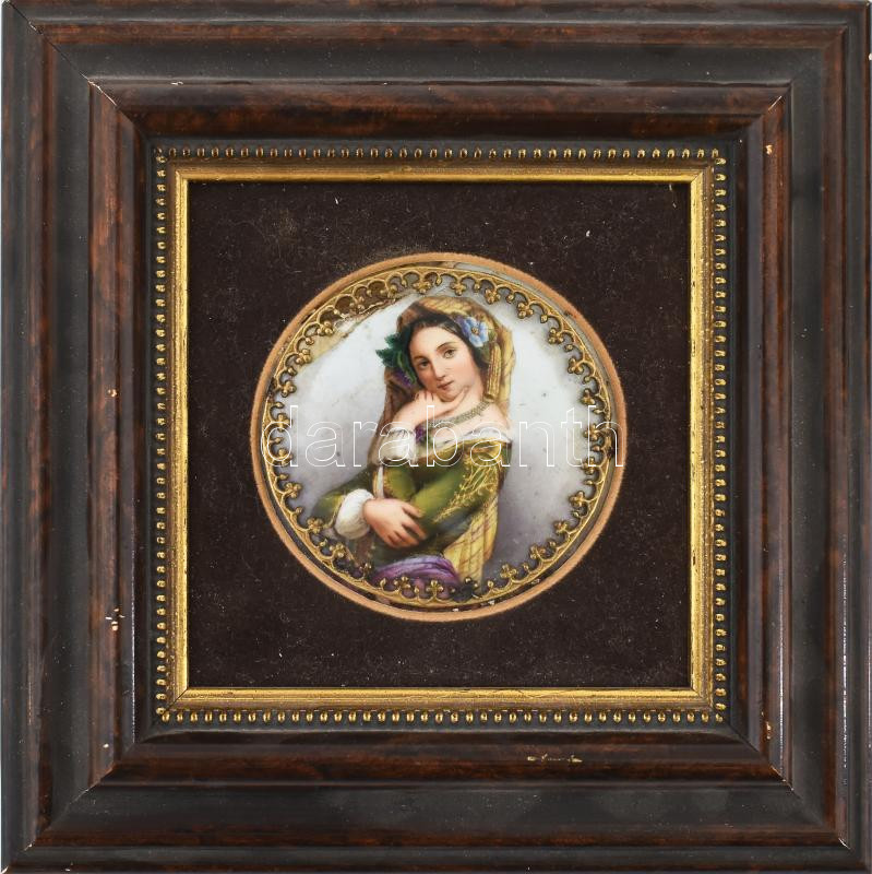 cca 19. sz. második fele, Női portré. Porcelánlapra festett kép, fa ke... https://www.darabanth.com/de/472-Fernauktion/472.0/Gemalde-und-Grafiken/Gemalde-und-Graphic-quot-signiertquot-quot-ohne-Signquot-~1000002/cca-19-sz-masodik-fele-Noi-portre-Porcelanlapra-festett-kep-fa-keretben-serulessel-d~II3195575
