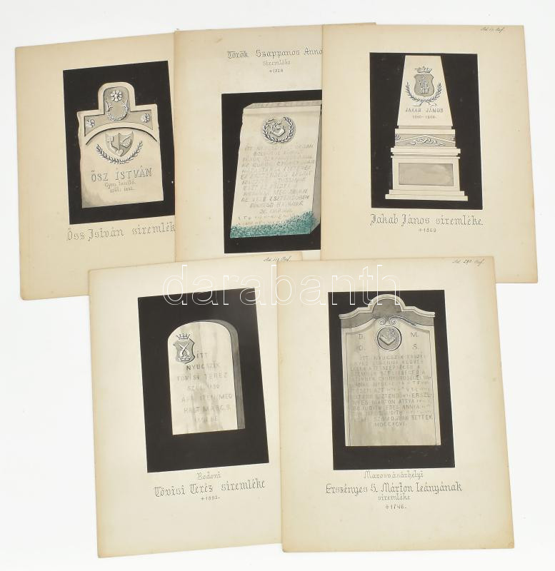 cca 1900 5 db régi síremlékről készült századfordulós rajz, kartonon 2... https://www.darabanth.com/de/472-Fernauktion/472.0/Gemalde-und-Grafiken/Gemalde-und-Graphic-quot-signiertquot-quot-ohne-Signquot-~1000002/cca-1900-5-db-regi-siremlekrol-keszult-szazadfordulos-rajz-kartonon-25x34-cm-Tus-papir-~II3102217