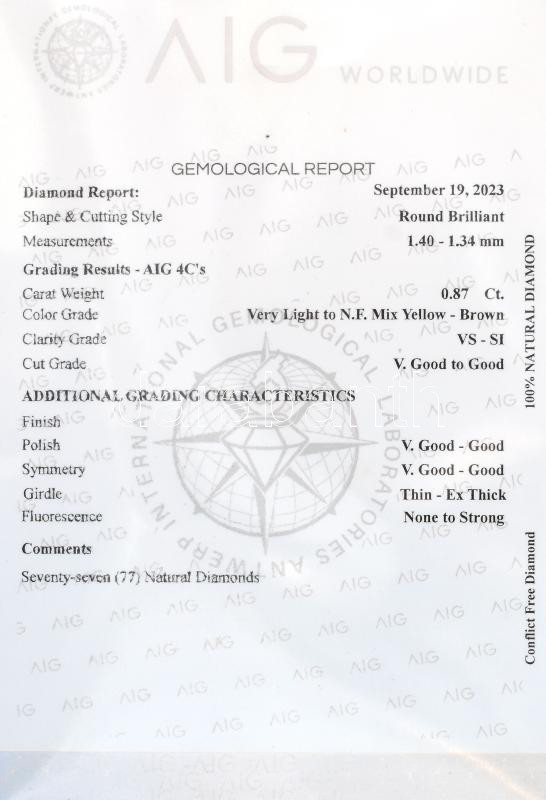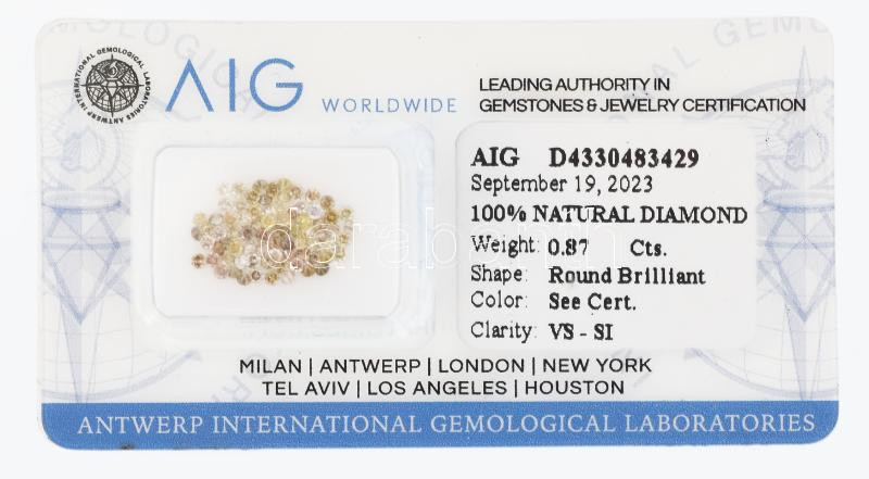 Beschreibung: Kerek briliánsok, 1,4-1,34 mm, leírással, 0,87 ct