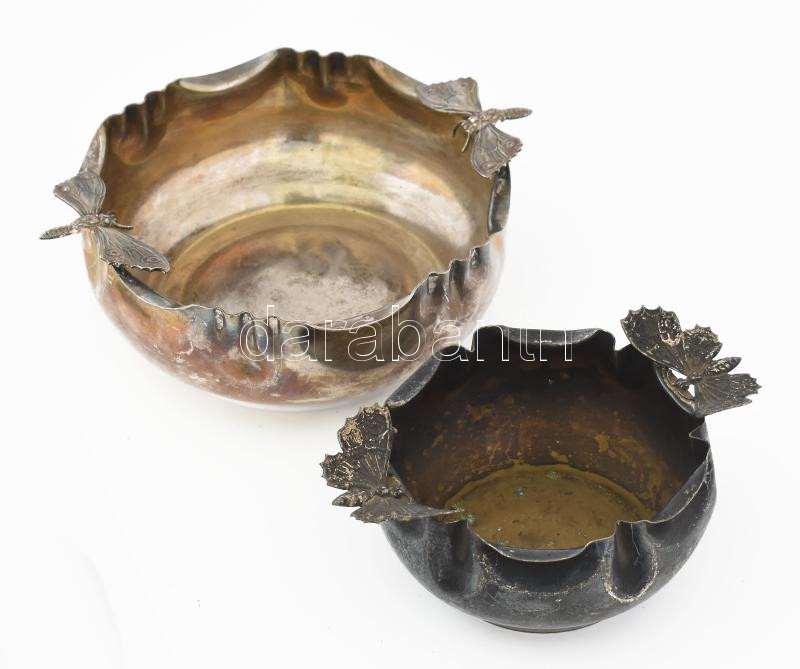 Beschreibung: 2 darab antik pillangó figurával díszített ezüstözött kínáló, d: 14-17 cm