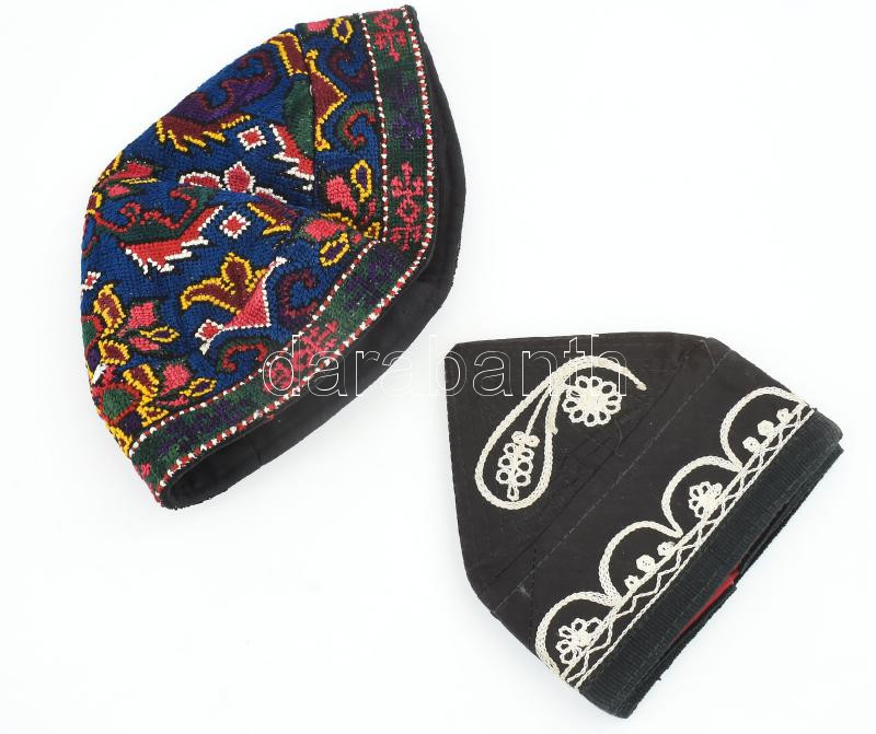 Beschreibung: 2 darab tübetejka. Kézzel hímzett, Kazahsztán / Kirgizisztán, cca 1950, jó állapotban.
