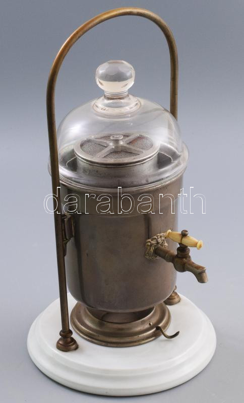 Antik bécsi kávéfőző, cca 1890-1910, fém, üveg fedőrésszel, porcelán t... https://www.darabanth.com/de/472-Fernauktion/472.0/Kunst-Dokumente-andere-Sammelgebiete/Antik~1000009/Antik-becsi-kavefozo-cca-1890-1910-fem-uveg-fedoresszel-porcelan-talppal-kis-fogohiC3~II3199784