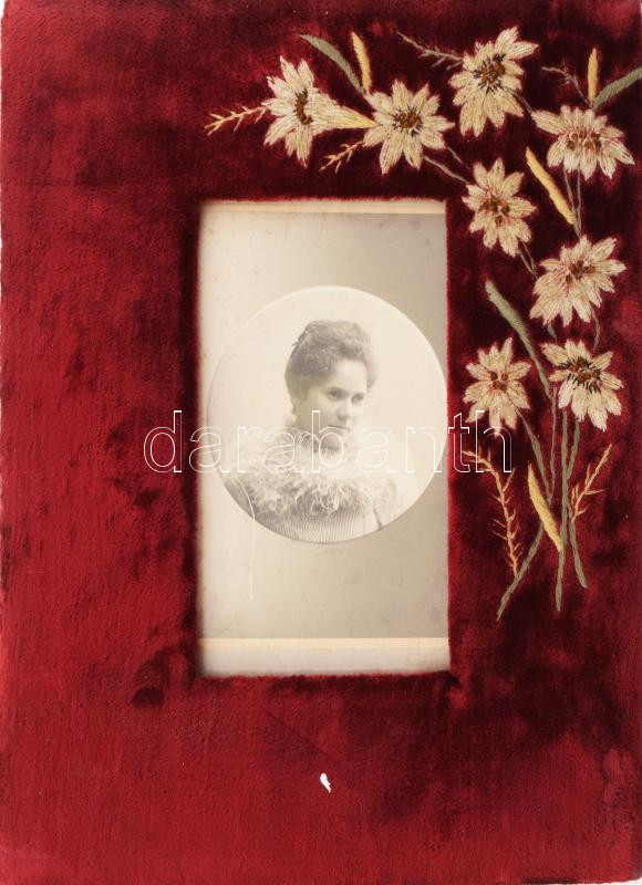 Asztali képkeret ,XX: sz eleje, Bársony, hímzett, régi fotóval,. Külső... https://www.darabanth.com/de/472-Fernauktion/472.0/Kunst-Dokumente-andere-Sammelgebiete/Antik~1000009/Asztali-kepkeret-XX-sz-eleje-Barsony-himzett-regi-fotoval-Kulso-meret-24x30-cm~II3197834