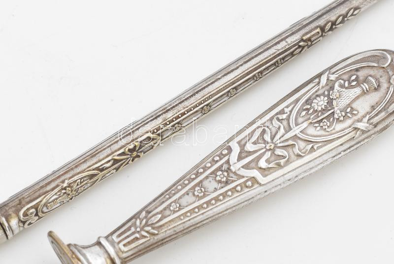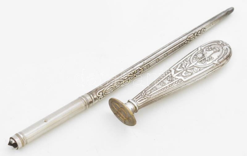 Író és pecsételő készlet. Ezüstözött fém. XIX. sz. Díszdobozban 8,3 cm... https://www.darabanth.com/de/472-Fernauktion/472.0/Kunst-Dokumente-andere-Sammelgebiete/Antik~1000009/Iro-es-pecsetelo-keszlet-Ezustozott-fem-XIX-sz-Diszdobozban-8-3-cm-16-5-cm~II3124138