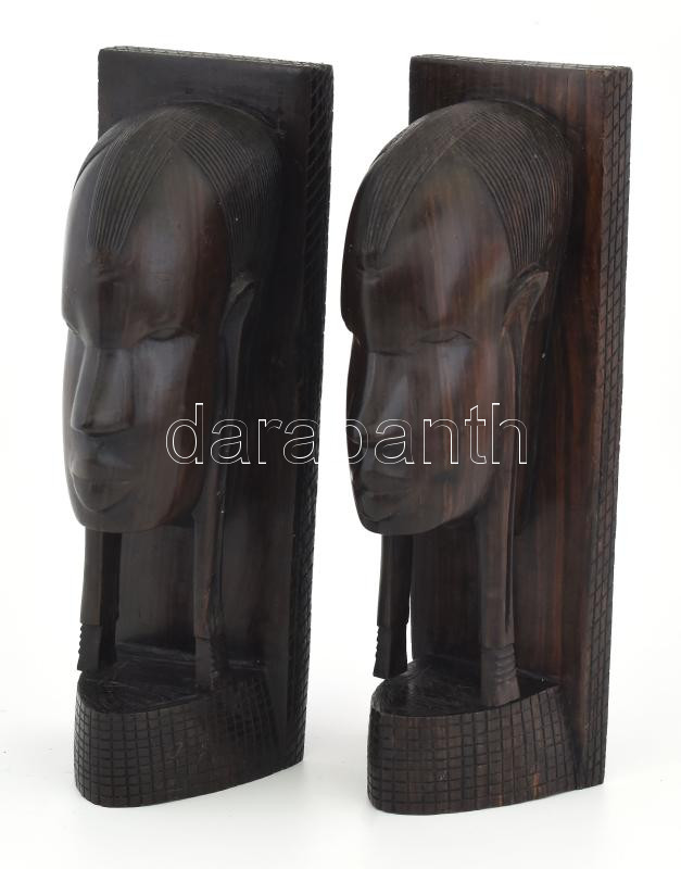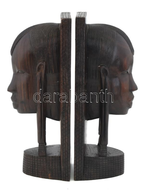 Beschreibung: Könyvtámasz pár afrikai figuratív keményfa faragás 23 cm