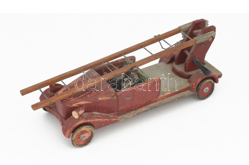 Régi fa játék tűzoltókocsi, sérülésekkel, kopásnyomokkal, 36×11 cm https://www.darabanth.com/de/472-Fernauktion/472.0/Kunst-Dokumente-andere-Sammelgebiete/Antik~1000009/Regi-fa-jatek-tuzoltokocsi-serulesekkel-kopasnyomokkal-36C39711-cm~II3202034