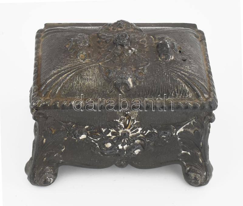 Beschreibung: cca 1900 Ón persely. Szecessziós, jelzett, zárszerkezet nélkül, 9,5x7x7 cm