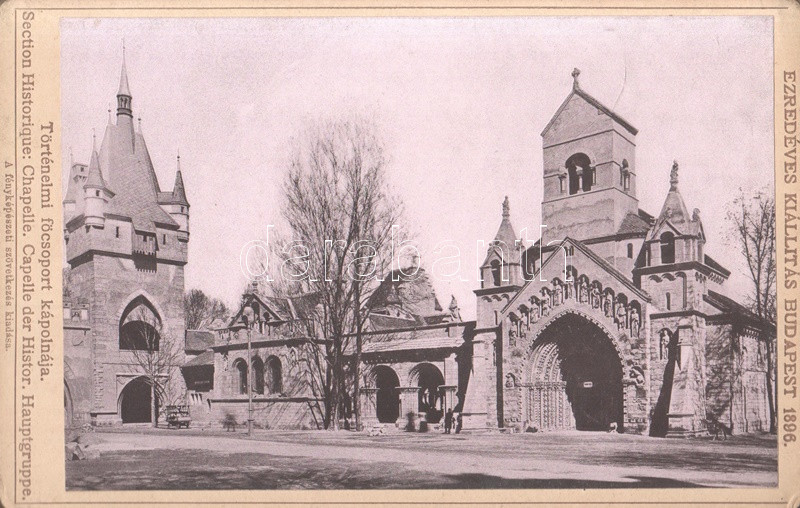 Az ezredéves kiállítást megörökítő korabeli fotóanyag táblái - a nemzetközi érdeklődésre való tekintettel - magyar, francia és német nyelven feliratozottak. A fotóanyagon a magyar építészeti hagyományokat és a honi technológiai haladást hirdető építmények. Tartalma: Halászkunyhó - Ünnepélyek csarnoka - Vadászati pavilon - Meteorológiai pavilon - Igazgatósági épület - Erdészeti pavilon - Vajdahunyad vára - Falurészlet - Egészségügyi pavilon - Pozsonyi városháza - A történelmi főcsoport kápolnája - Haditengerészet. Az utolsó tábla verzóján egykori jegyzet.