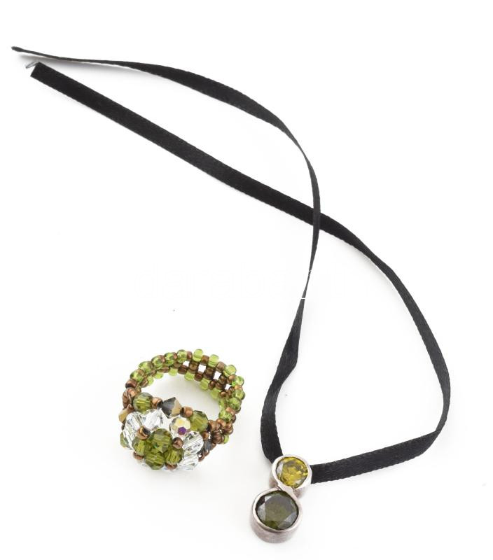 Beschreibung: Swarovski gyöngyökből készült gyűrű + ezüst (Ag) köves medál, egymáshoz illő színvilággal.