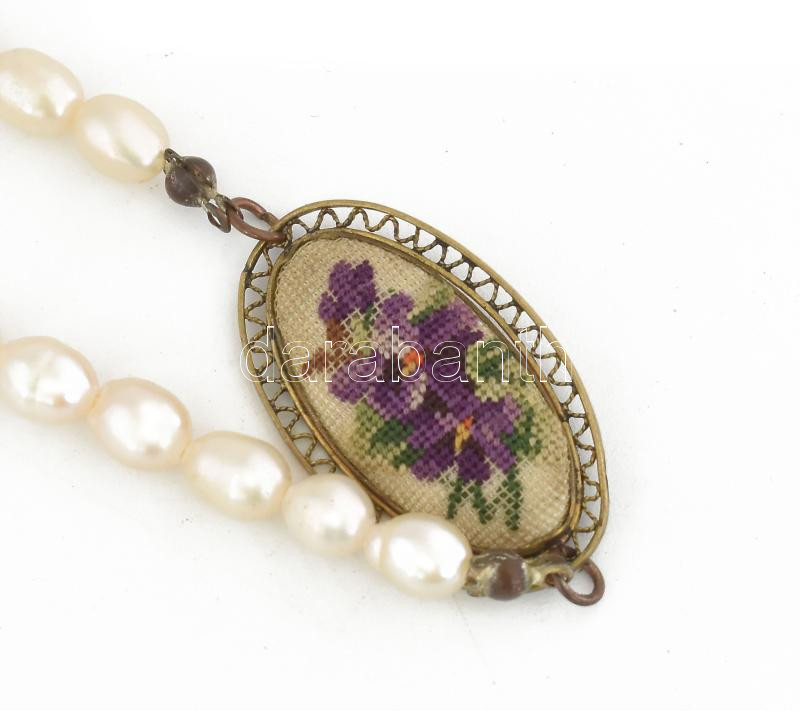 Tenyésztett gyöngy nyaklánc, goblein berakásos medállal https://www.darabanth.com/de/472-Fernauktion/472.0/Kunst-Dokumente-andere-Sammelgebiete/Design-Mode~1000013/Tenyesztett-gyongy-nyaklanc-goblein-berakasos-medallal~II3200009