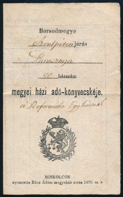 1860 Borsod, Parasznya községi adókkönyvecske https://www.darabanth.com/de/472-Fernauktion/472.0/Kunst-Dokumente-andere-Sammelgebiete/Dokument~1000021/1860-Borsod-Parasznya-kozsegi-adokkonyvecske~II3194233