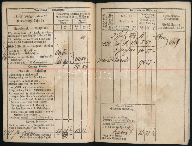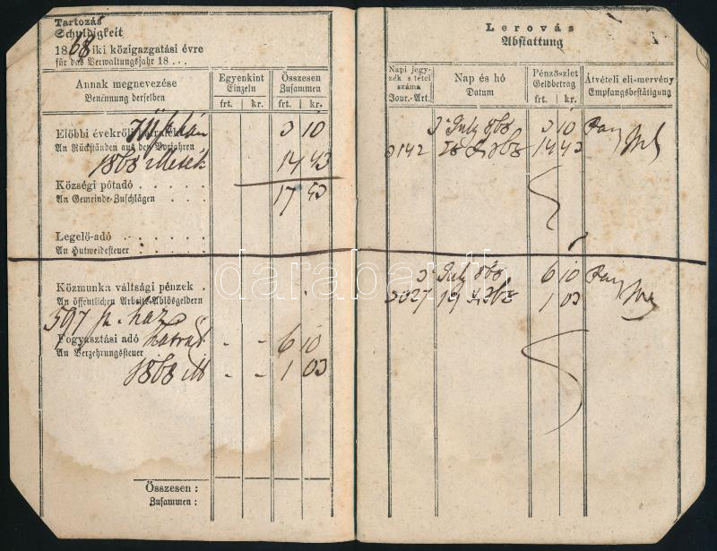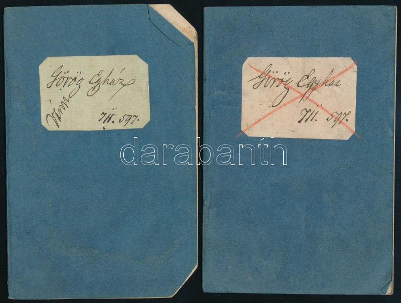 1868-1874 Görög egyház 2 db községi adókönyecskéje, egyikben számos, másikban néhány bejegyzéssel. Papírkötésen címkén magyar nyelven feliratozva. Beazonosítandó település.