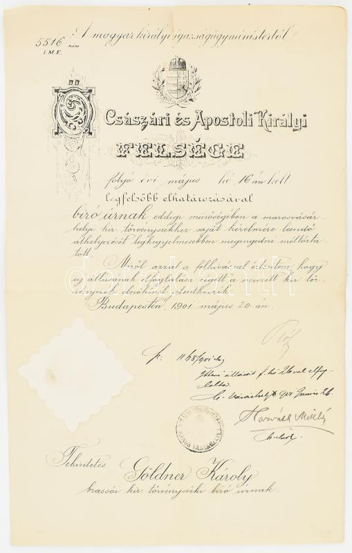1901 Bp., Plósz Sándor (1846-1925) igazságügy-miniszter saját kezű alá... https://www.darabanth.com/de/472-Fernauktion/472.0/Kunst-Dokumente-andere-Sammelgebiete/Dokument~1000021/1901-Bp-Plosz-Sandor-1846-1925-igazsagugy-miniszter-sajat-kezu-alairasa-kinevezesi-okm~II3202320