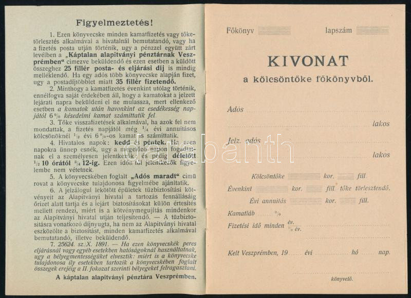 1911 Veszprém, belkezelésre szolgáló törlesztési könyvecske, bejegyzés... https://www.darabanth.com/de/472-Fernauktion/472.0/Kunst-Dokumente-andere-Sammelgebiete/Dokument~1000021/1911-Veszprem-belkezelesre-szolgalo-torlesztesi-konyvecske-bejegyzes-nelkul-papirkotC3~II3051084