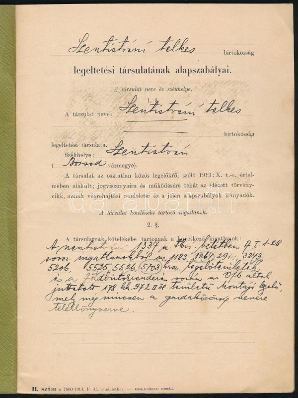 1931 A Szentistváni telkes birtokosság legeltetési társulatának alapsz... https://www.darabanth.com/de/472-Fernauktion/472.0/Kunst-Dokumente-andere-Sammelgebiete/Dokument~1000021/1931-A-Szentistvani-telkes-birtokossag-legeltetesi-tarsulatanak-alapszabalyai-26p-plus-melleklet~II3199616