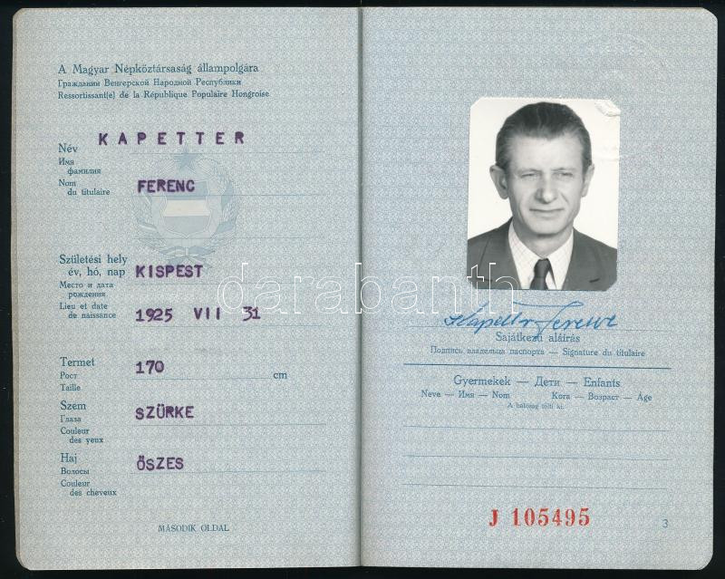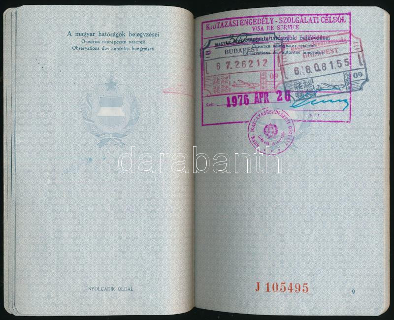 1974 Magyar Népköztársaság által kiállított fényképes útlevél brit víz... https://www.darabanth.com/de/472-Fernauktion/472.0/Kunst-Dokumente-andere-Sammelgebiete/Dokument~1000021/1974-Magyar-Nepkoztarsasag-altal-kiallitott-fenykepes-utlevel-brit-vizummal~II3200720