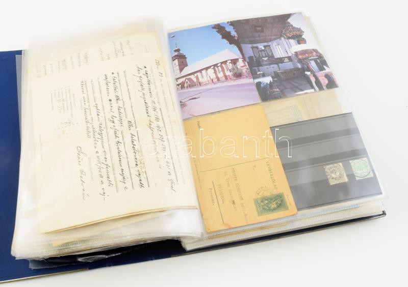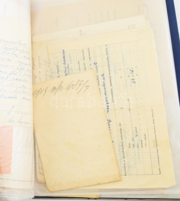 cca 1800-1940 Sajószentpéteri helytörténeti okmány gyűjtemény. Mindenféle irat, okmány, igazolvány, számla, ami közös bennük hogy mind sajószentpéteri vonatkozásúak,. Több mint 100 darab, gyűrűs berakóban