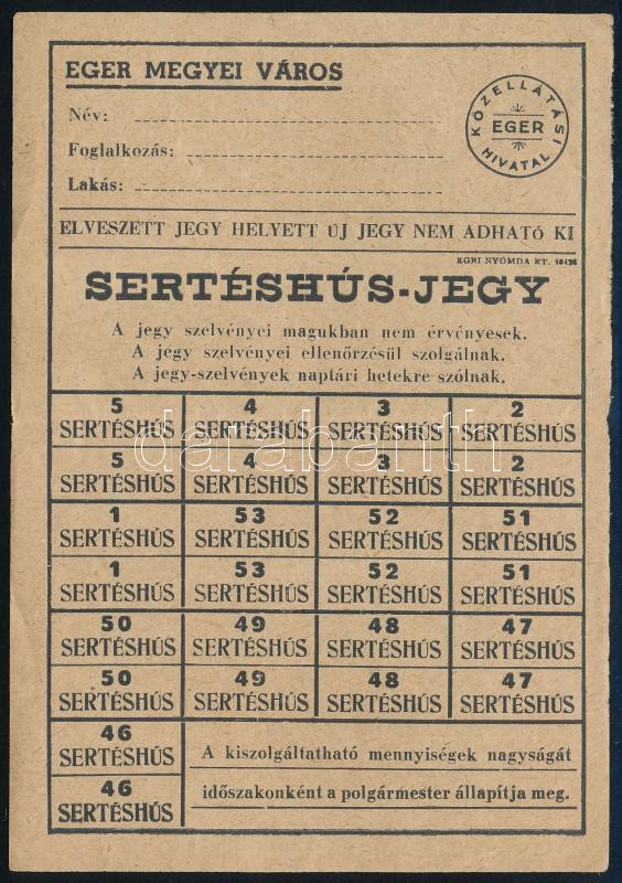 cca 1942 Eger városi sertéshús-jegy https://www.darabanth.com/de/472-Fernauktion/472.0/Kunst-Dokumente-andere-Sammelgebiete/Dokument~1000021/cca-1942-Eger-varosi-serteshus-jegy~II3200562