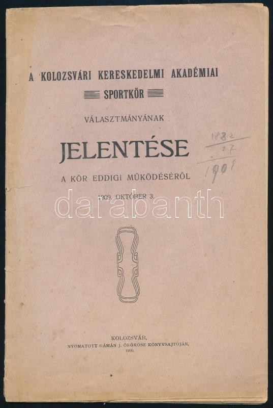 1909 Kolozsvári Kereskedelmi Akadémiai Sportkör választmányának jelent... https://www.darabanth.com/de/472-Fernauktion/472.0/Kunst-Dokumente-andere-Sammelgebiete/Drucksachen~500013/1909-Kolozsvari-Kereskedelmi-Akademiai-Sportkor-valasztmanyanak-jelentese-a-kor-eddigi-mu~II3199287