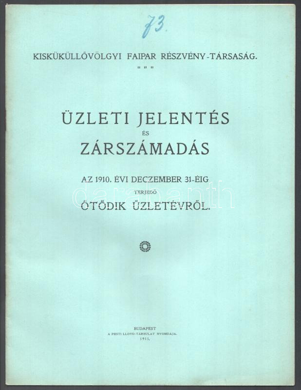 1911 Kisküküllővölgyi Faipari Részvény-Társaság üzleti jelentés és zár... https://www.darabanth.com/de/472-Fernauktion/472.0/Kunst-Dokumente-andere-Sammelgebiete/Drucksachen~500013/1911-Kiskukullovolgyi-Faipari-Reszveny-Tarsasag-uzleti-jelentes-es-zarszamadas-az-1910~II3142819