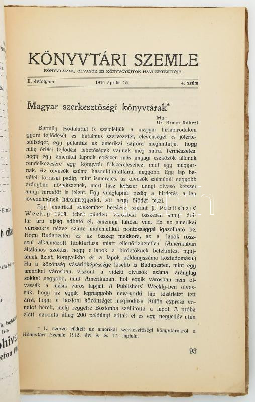 1914 Könyvtári Szemle II. évf. 3-6. sz., 1914. március-június, szerk.:... https://www.darabanth.com/de/472-Fernauktion/472.0/Kunst-Dokumente-andere-Sammelgebiete/Drucksachen~500013/1914-Konyvtari-Szemle-II-evf-3-6-sz-1914-marcius-junius-szerk-Kohalmi-Bela-Kiadoi-~II3104663