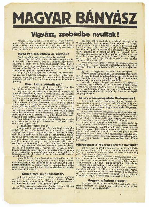 1923, Magyar Bányász, Vigyázz, zsebedbe nyultak! értesítő plakát. Fele... https://www.darabanth.com/de/472-Fernauktion/472.0/Kunst-Dokumente-andere-Sammelgebiete/Drucksachen~500013/1923-Magyar-Banyasz-Vigyazz-zsebedbe-nyultak-ertesito-plakat-Felelos-Dvihally-Geza-fC5~II3199560