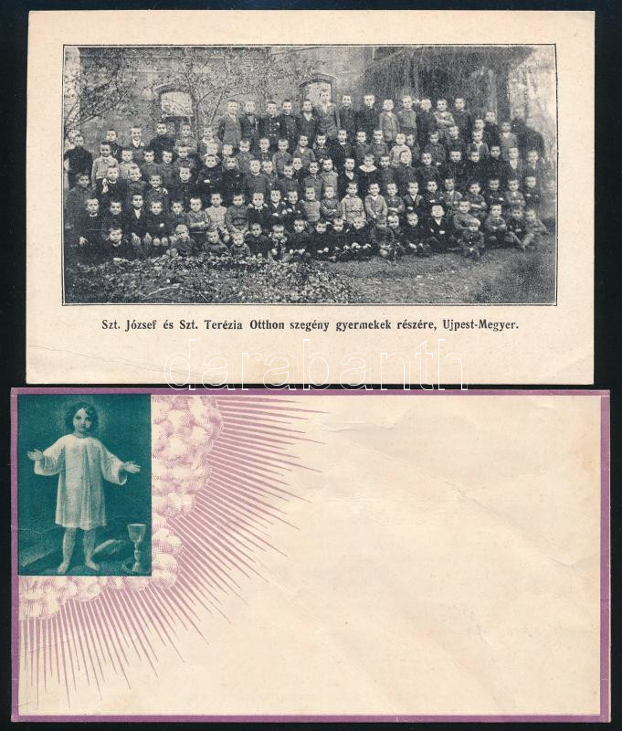 Beschreibung: 1930-1940 Újpest, Szt. József és Szt. Terézia Otthon 2 db lapja adománykérő felhívással gyermekek részére