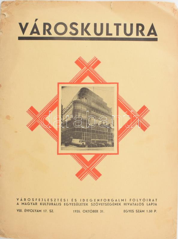 1935 Városkultura, városfejlesztési és idegenforgalmi folyóirat VIII. ... https://www.darabanth.com/de/472-Fernauktion/472.0/Kunst-Dokumente-andere-Sammelgebiete/Drucksachen~500013/1935-Varoskultura-varosfejlesztesi-es-idegenforgalmi-folyoirat-VIII-evf-17-sz-1935-okt~II3168189