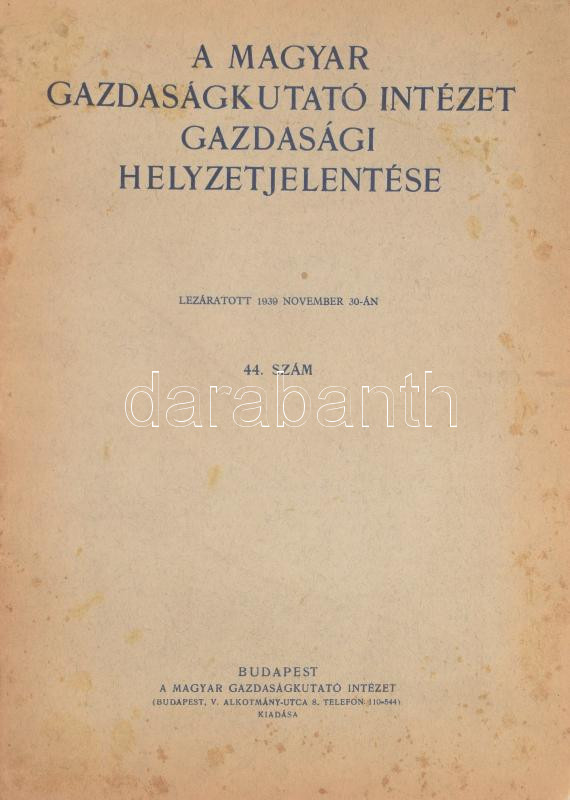 1936-1941 A Magyar Gazdaságkutató Intézet gazdasági helyzetjelentése, ... https://www.darabanth.com/de/472-Fernauktion/472.0/Kunst-Dokumente-andere-Sammelgebiete/Drucksachen~500013/1936-1941-A-Magyar-Gazdasagkutato-Intezet-gazdasagi-helyzetjelentese-7-db~II3176323